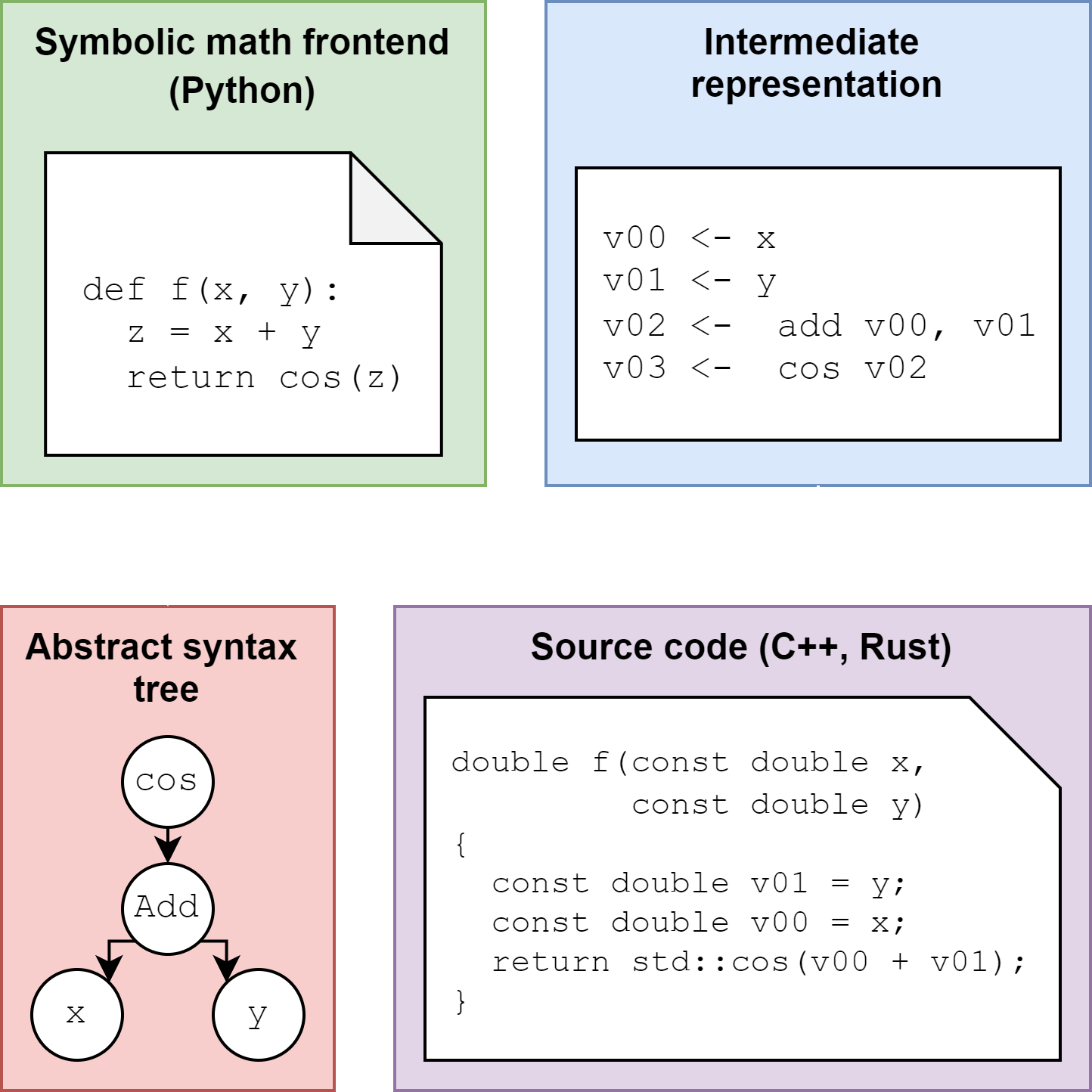 Conceptually, the framework behaves somewhat like a transpiler that converts math into code. At a high level, the steps involved are: